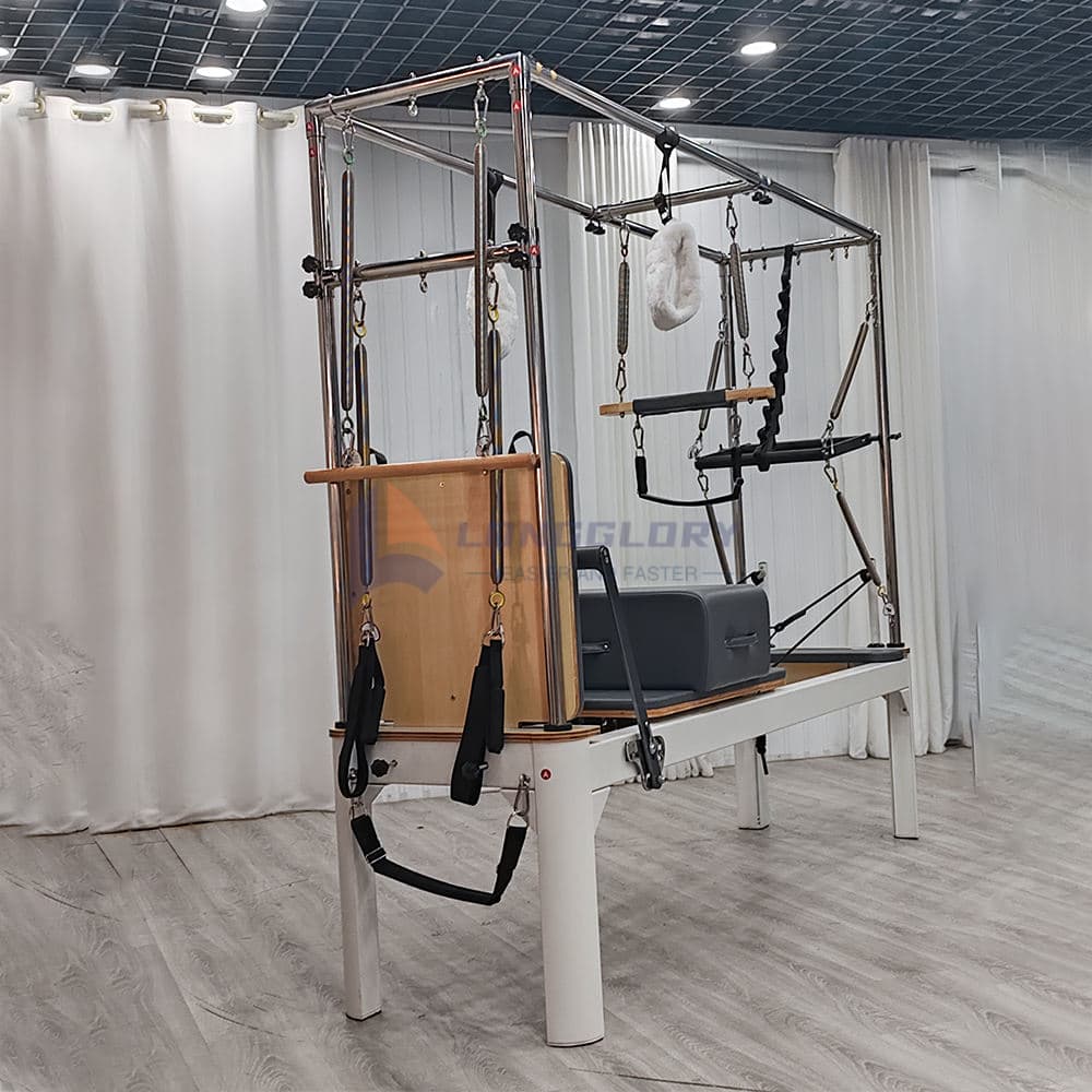 Tämän Three in One Pilates Cadillac Reformerin avulla käyttäjät voivat suorittaa reformer-harjoituksia, cadillac-tornivenytyksiä ja dynaamista ydinharjoittelua yhdellä koneella, mikä maksimoi tilan ja toiminnallisuuden. Ihanteellinen Pilates-studioihin, kuntoutuskeskuksiin, boutique-kuntosaleihin ja kotiharjoitteluhuoneisiin, alumiininen Three in One Pilates Cadillac Reformer tukee monenlaisia liikkeitä, mukaan lukien jalkojen ympyröitä, rullaamista, syöksyjä, ytimen stabilointia ja selkärangan kohdistusharjoituksia.