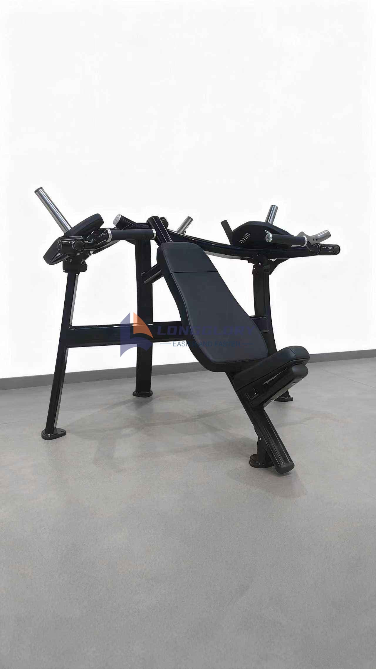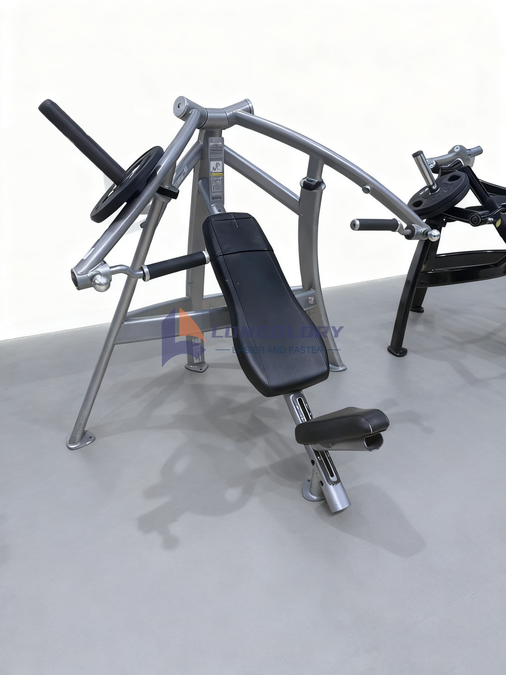 Commercial Incline Chest Press on rakennettu raskaaseen teräsrunkoon, joka varmistaa pitkäkestoisen kestävyyden ja vakauden korkeataajuisessa kaupallisessa käytössä. Sen ergonominen kallistuskulma auttaa aktivoimaan ylempiä rintalihaksia tehokkaammin kuin litteät puristusliikkeet, joten Commercial Incline Chest Press on välttämätön kone rintakehän voimaharjoitteluun kaupallisilla kuntosaleilla.
