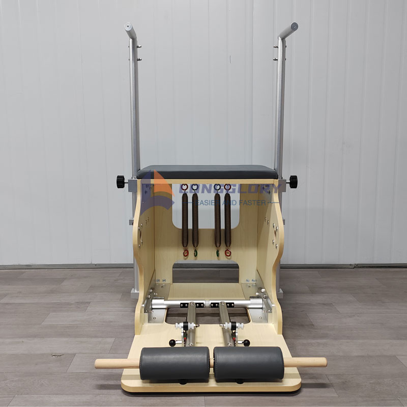 3. Pilates-tuoli: Design Essence: Integroitu poljin, säädettävät jouset, luistamattomat kahvat ja mukava istuin, jonka älykäs muotoilu tasapainottaa toiminnallisuutta ja kannettavuutta. Harjoittelufokus: Korostaa yksipuolisen raajan koordinaation ja dynaamisen tasapainon vahvistamista, muotoilee tarkasti lantion ja jalkojen linjoja ja syvästi aktivoivat ydinlihakset. Käytön kohokohdat: Kompakti ja tilaa säästävä, sopii erityisesti kotikäyttöön; joustava säädettävä vastus mukautuu eri harjoitusvaiheisiin. Klassiset liikkeet: Step-up press (ilmatyyny) ja yhden jalan tasapainoharjoittelu parantavat alaraajojen voimaa ja tasapainon hallintaa.